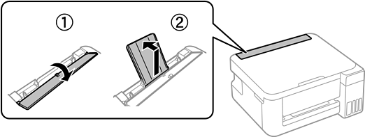 Læg papiret i med den korte kant først. Når du har indstillet den lange kant som bredden af den brugerdefinerede størrelse, skal du imidlertid lægge papir i med den lange kant først.