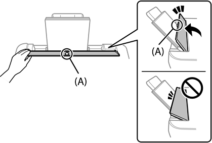 (A)が用紙に当たらないところまで給紙口カバーを倒します。