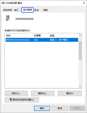 单击驱动程序标签。如果本产品名称显示在列表中,则表明您的计算机上已安装了正版爱普生打印机驱动程序。