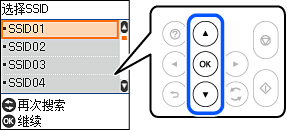 5 从打印机控制面板选择无线路由器的 SSID,然后按 OK 按钮。