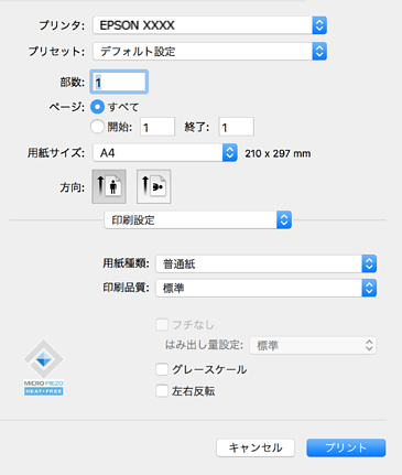 お使いのプリンターを選択します。