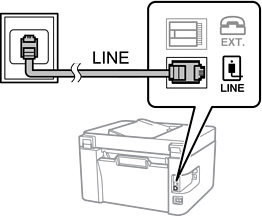Sambungkan kabel telefon daripada bicu dinding telefon atau port PBX ke port LINE pada bahagian belakang pencetak.