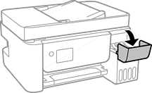 Jika dakwat tidak mengalir ke dalam tangki, tanggalkan botol dakwat dan masukkannya semula. Walau bagaimanapun, jangan keluarkan dan masukkan semula botol dakwat apabila dakwat telah sampai ke garisan atas; jika tidak dakwat mungkin mengalir keluar.