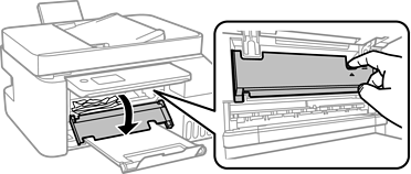 Jangan sentuh butang pada panel kawalan semasa tangan anda berada dalam pencetak. Sekiranya pencetak bermula beroperasi, ia boleh menyebabkan kecederaan. Berhati-hati untuk tidak menyentuh bahagian yang menonjol bagi mengelakkan kecederaan.