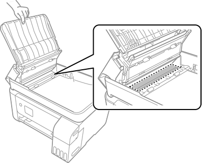 Gunakan kain lembut yang lembap untuk membersihkan penggulung dan bahagian dalam ADF itu.
