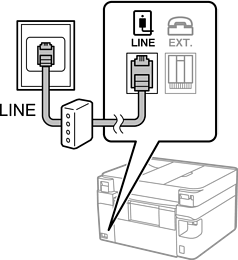 Свържете телефонен кабел от DSL модем или терминален адаптер за ISDN към LINE порт на гърба на принтера. За повече подробности вижте документацията, предоставена с модема или адаптера.