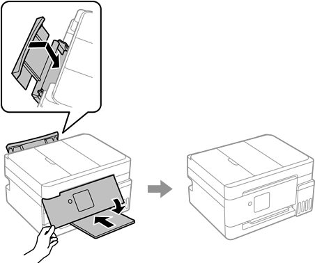 Připravte tiskárnu k přepravě, jak je uvedeno níže.