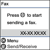 Pokud se zobrazí zpráva o zahájení nebo příjmu faxů jako na následující obrazovce, bylo navázáno připojení.