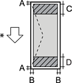 Die Druckqualität nimmt aufgrund des Druckermechanismus in den schattierten Bereichen ab.