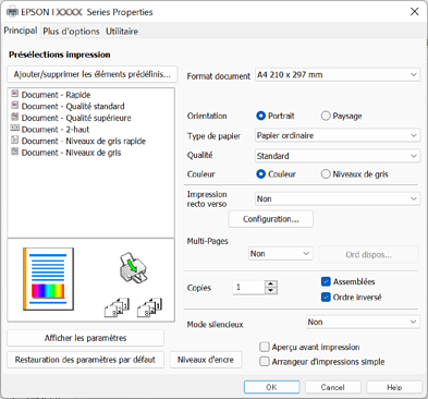 Sélectionnez Préférences ou Propriétés pour ouvrir la fenêtre du pilote d’impression.