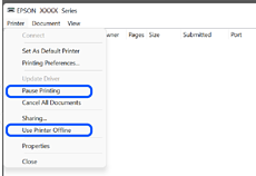 ודא שמנהל התקן מדפסת מקורי של Epson מותקן (EPSON XXXXX). אם לא הותקן מנהל התקן מדפסת מקורי של Epson, הפונקציות הזמינות מוגבלות. אנו ממליצים להשתמש במנהל התקן מדפסת מקורי של Epson.