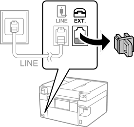 Savienojiet tālruņa ierīci ar portu EXT., izmantojot tālruņa kabeli.