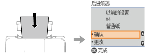如果所显示的打印纸尺寸和类型与装入的打印纸不同,请更改并确认打印纸尺寸和打印纸类型的设置。