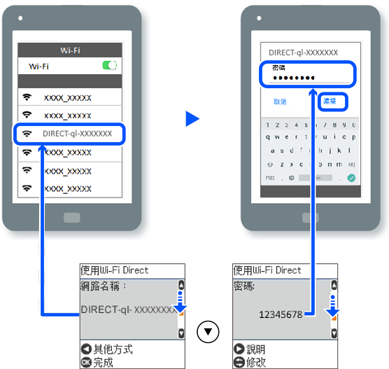 僅需對印表機及要連接的裝置進行一次這些設定。除非已停用 Wi-Fi Direct 或恢復網路設定為預設值,否則無需再次進行這些設定。
