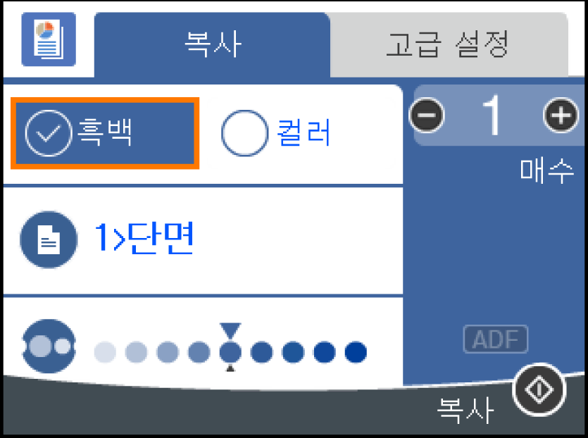 복사 탭을 선택한 후 흑백 또는 컬러를 선택합니다.