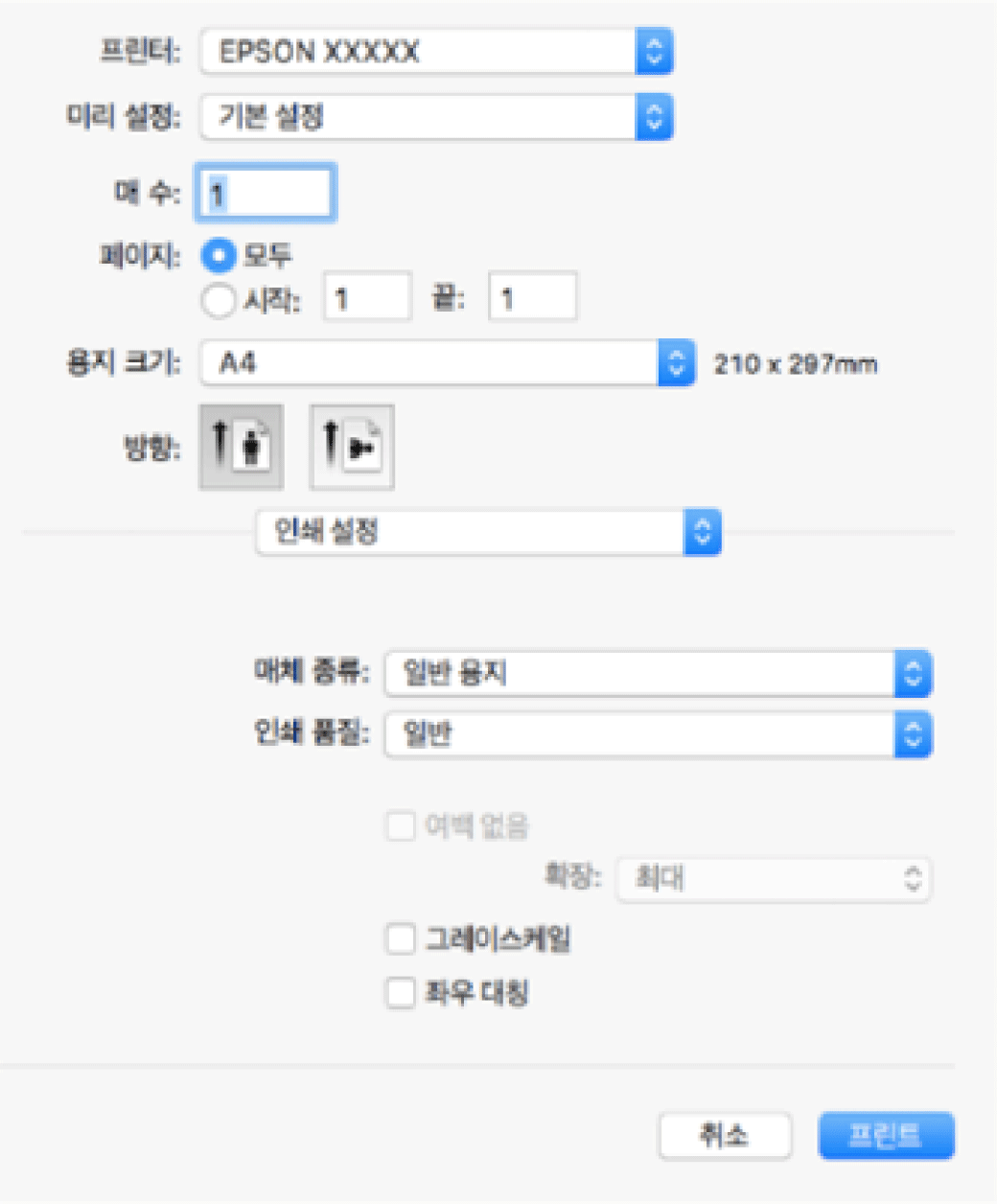 5. 팝업 메뉴에서 인쇄 설정을 선택합니다.