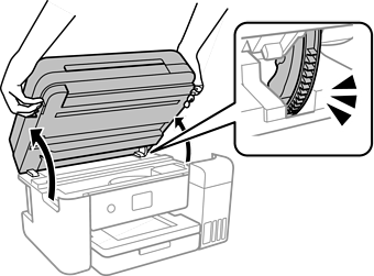 Кога го исправувате печатачот, внимавајте да не ви ги заглави дланките или прстите. Во спротивно, може да се повредите.
