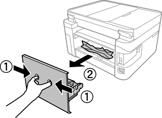 Извадете ја заглавената хартија од заден капак.