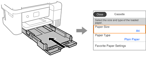 Ако прикажаната големина и типот на хартијата се разликуваат од оние на внесената хартија, изберете ја ставката што треба да ја промените. Ако поставките се соодветни за ставената хартија, затворете го екранот.