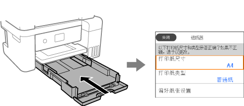 > 装入打印纸 > 打印纸尺寸和类型设置