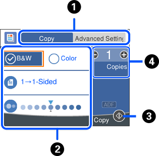 Nusxalar sonini kiritish imkonini beradigan ekrandagi klaviaturani namoyish etadi. |