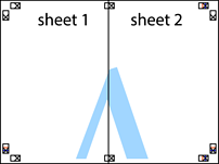 Sheet 1 va Sheet 2-ni tayyorlang. Sheet 1 hoshiyasini yuqori va quyi kesishish belgilari markazi orqali vertikal ko‘k chiziq bo‘ylab qirqing.