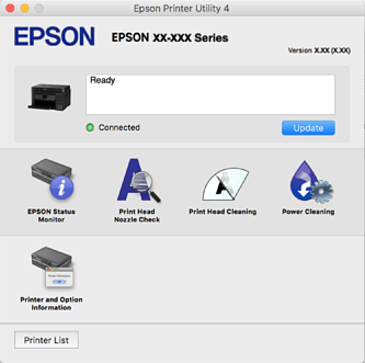 Siz soploni tekshirish va chop qilish kallagini tozalash kabi texnik xizmat ko‘rsatish funksiyasini ishga tushirishingiz va EPSON Status Monitor-ni ishga tushirish orqali printer holati va xatolik ma’lumotlarini ko‘rishingiz mumkin.