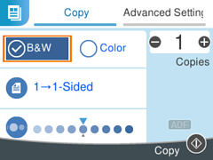 Seleccione la pestaña Copiar y, a continuación, seleccione B/N o Color.