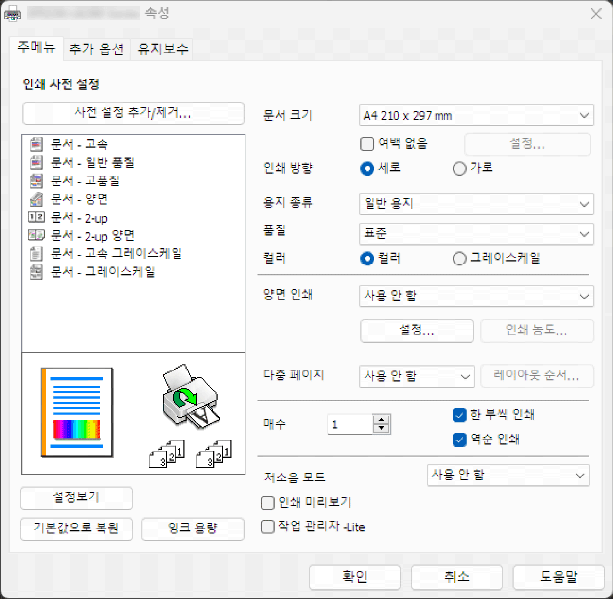 > 인쇄 > 문서 인쇄 > 컴퓨터에서 인쇄 > 간편 설정을 사용한 인쇄
