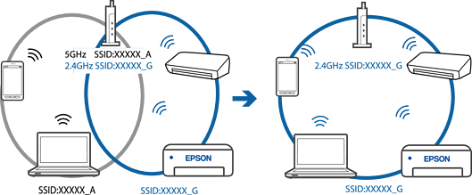 Όταν χρησιμοποιείτε πολλαπλούς ασύρματους δρομολογητές ταυτόχρονα ή όταν ο ασύρματος δρομολογητής έχει πολλαπλά SSID και συσκευές που συνδέονται σε διαφορετικά SSID, δεν μπορείτε να συνδεθείτε στον ασύρματο δρομολογητή.