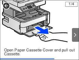 Στην οθόνη LCD μπορείτε να δείτε κινούμενα σχέδια με οδηγίες χειρισμού, όπως η τοποθέτηση χαρτιού ή η αφαίρεση μπλοκαρισμένου χαρτιού.