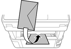 Τοποθετήστε φάκελο στο κέντρο της πίσω υποδοχής τροφοδοσίας χαρτιού πρώτα με τη μικρή πλευρά και με το αναδιπλούμενο μέρος στραμμένο προς τα κάτω, και σύρετε τους πλαϊνούς οδηγούς στις άκρες του φακέλου.