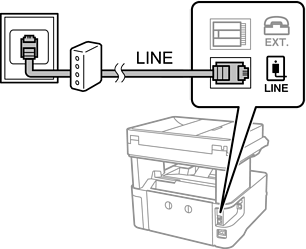 Συνδέστε ένα καλώδιο τηλεφώνου από το μόντεμ DSL ή από τον προσαρμογέα τερματικού θύρα ISDN στη θύρα LINE στο πίσω μέρος του εκτυπωτή. Ανατρέξτε στα εγχειρίδια που συνοδεύουν το μόντεμ ή τον προσαρμογέα για περισσότερες λεπτομέρειες.