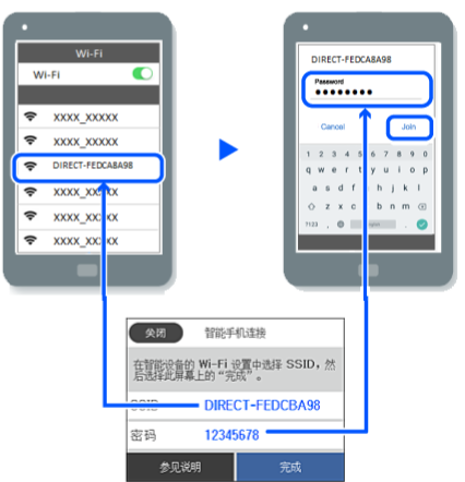 如果您使用的是 iOS 设备,则还可以使用 iOS 标准相机应用程序扫描二维码来进行连接。请查看以下链接:http://epson.sn