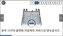 LCD 화면에서 용지 급지 또는 걸린 용지 제거와 같은 조작 방법의 애니메이션을 볼 수 있습니다.