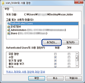 그룹 또는 사용자 이름 하위의 추가를 클릭합니다.