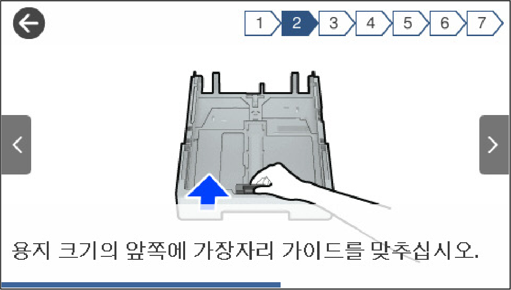 작동 화면 하단의 방법 선택: 상황에 맞는 애니메이션을 표시합니다. 애니메이션은 프린터 모델에 따라 다릅니다.