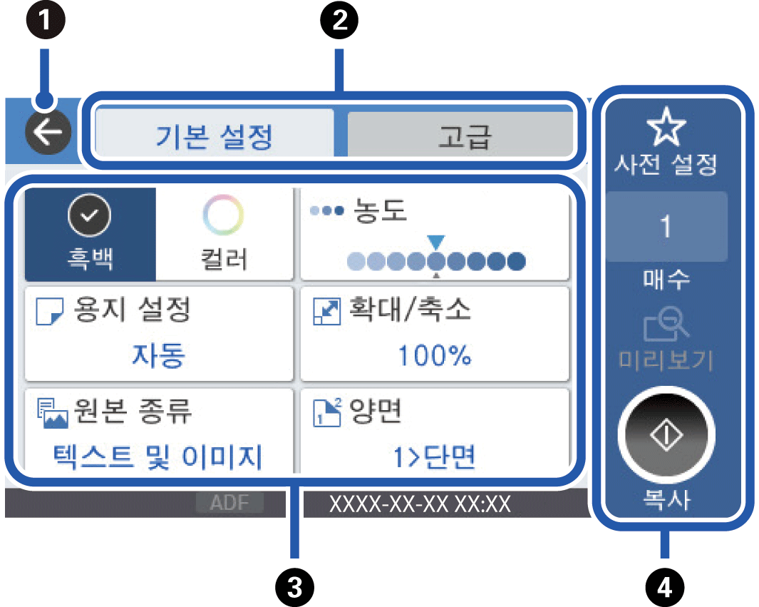 인쇄 매수를 입력할 수 있는 화상 키패드를 표시합니다. |