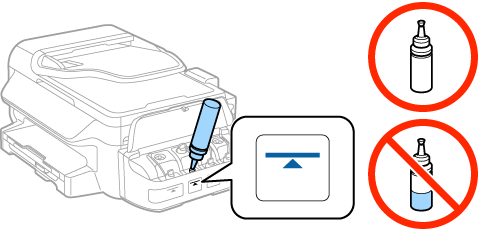 3 Inkoust přiřaďte k jednotlivým nádržkám podle barev a celý obsah vylijte do příslušných nádržek.