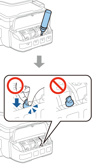 5 Pevně uzavřete víčko nádržky na inkoust.