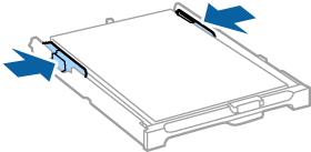2 Lükake külgmised servajuhikud paberikasseti servade vastu. Lükake seejärel eesmine servajuhik formaadile A4.
