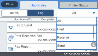 Μπορείτε να ελέγξετε τις εργασίες φαξ σε εξέλιξη ή το ιστορικό εργασιών.