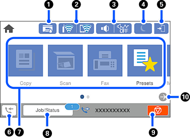 מציגה עבודות בביצועה הנמצאות בהמתנה. הקש כדי להציג את סוג העבודות, טיימר ההגעה, שמות משתמשים, וכן הלאה כרשימה. המספר המוצג מצביע על מספר העבודות הנמצאות בהמתנה. |