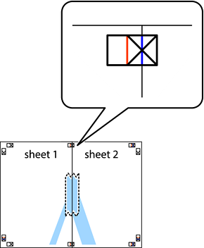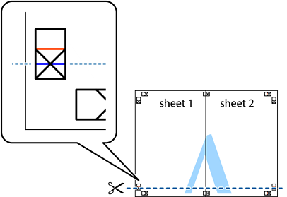 הכן את Sheet 1 ואת Sheet 2. גזור את השוליים של Sheet 1 לאורך הקו הכחול האנכי דרך המרכז של סימני הצלב העליונים והתחתונים.