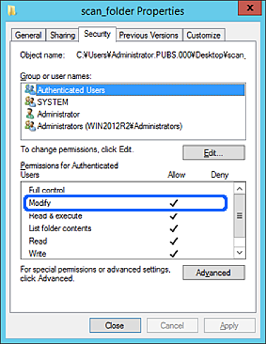 אם הוא לא נבחר, בחר משתמשים מאומתים, לחץ ערוך, בחר התר או שנה בתוך הרשאות למשתמשים מאומתים, ואז לחץ אישור.