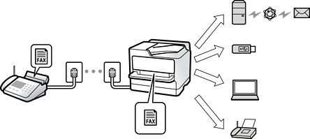 פלט ללא תנאים: כברירת מחדל מודפסים הפקסים המתקבלים ללא תנאי. תוכל להגדיר יעדים עבור הפקסים שמתקבלים אל תיבת הדואר הנכנס, אל מחשב, אל זכרון חיצוני, דוא"לים, תיקיות או פקסים אחרים. אם שמרת בתיבת הדואר תוכל לבדוק את התוכן במסך.