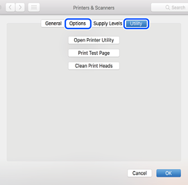 Pasirinkite Sistemos nuostatos, atidarę meniu „Apple“, spauskite Spausdintuvai ir skaitytuvai (arba Spausdinti ir nuskaityti, Spausdinti ir siųsti faksogramą), tada pasirinkite spausdintuvą. Spustelėkite Parinktys ir tiekimas, jei lange rodomi skirtukai Parinktys ir Paslaugos, reiškia, kad jūsų kompiuteryje įdiegta originali „Epson“ spausdintuvo tvarkyklė.