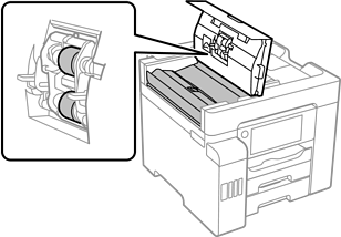 Valj in notranjost samodejnega podajalnika dokumentov očistite z mehko in vlažno krpo.