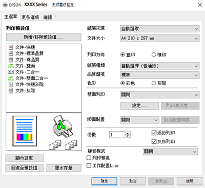 有關印表機驅動程式的詳細資訊,請參閱功能表選項。