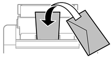 Τοποθετήστε φακέλους στο κέντρο της πίσω τροφοδοσίας χαρτιού, πρώτα με τη μικρή πλευρά και με το αναδιπλούμενο μέρος στραμμένο προς τα κάτω, και σύρετε τους πλαϊνούς οδηγούς στις άκρες των φακέλων.